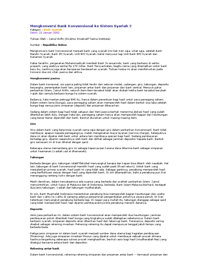 Mengkonversi Bank Konvensional Ke Sistem Syariah Islam 2