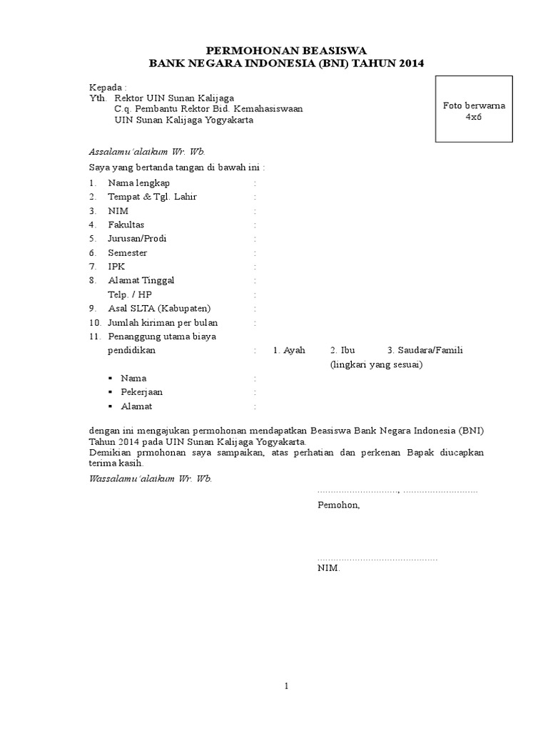 Formulis Permohonan Beasiswa BNI 2014.doc