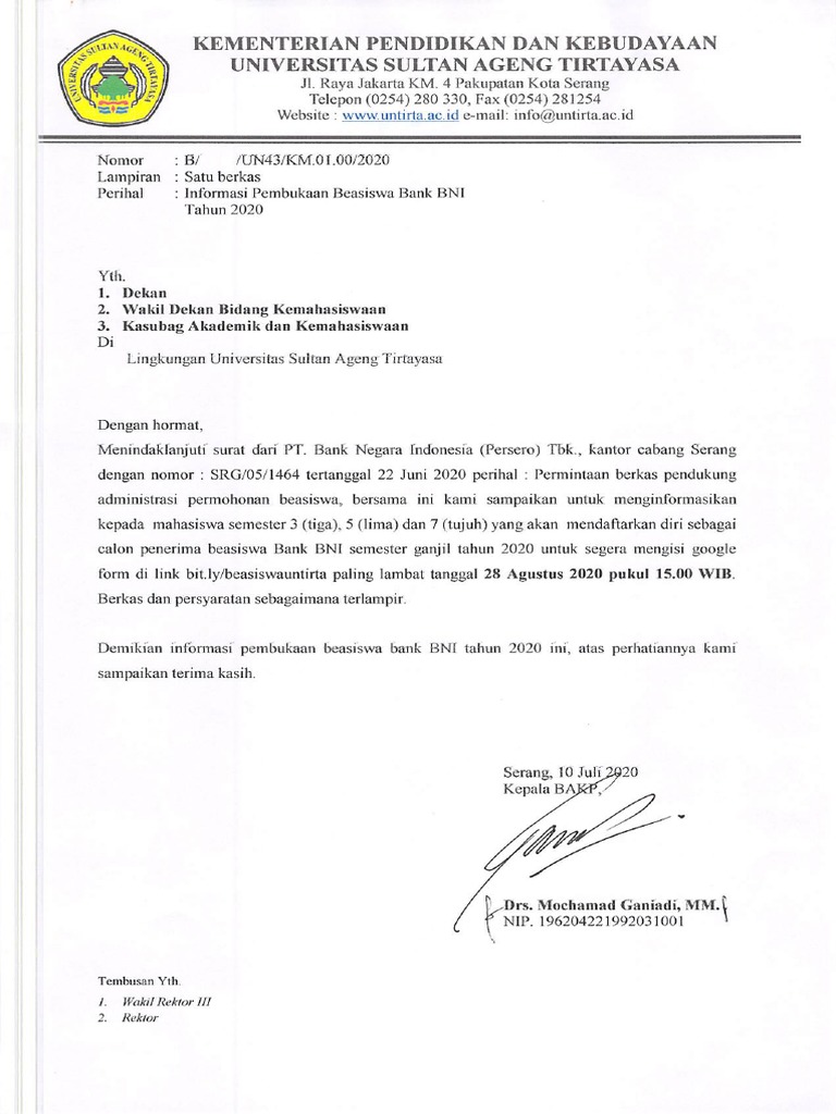 lampiran informasi pembukaan beasiswa Bank BNI