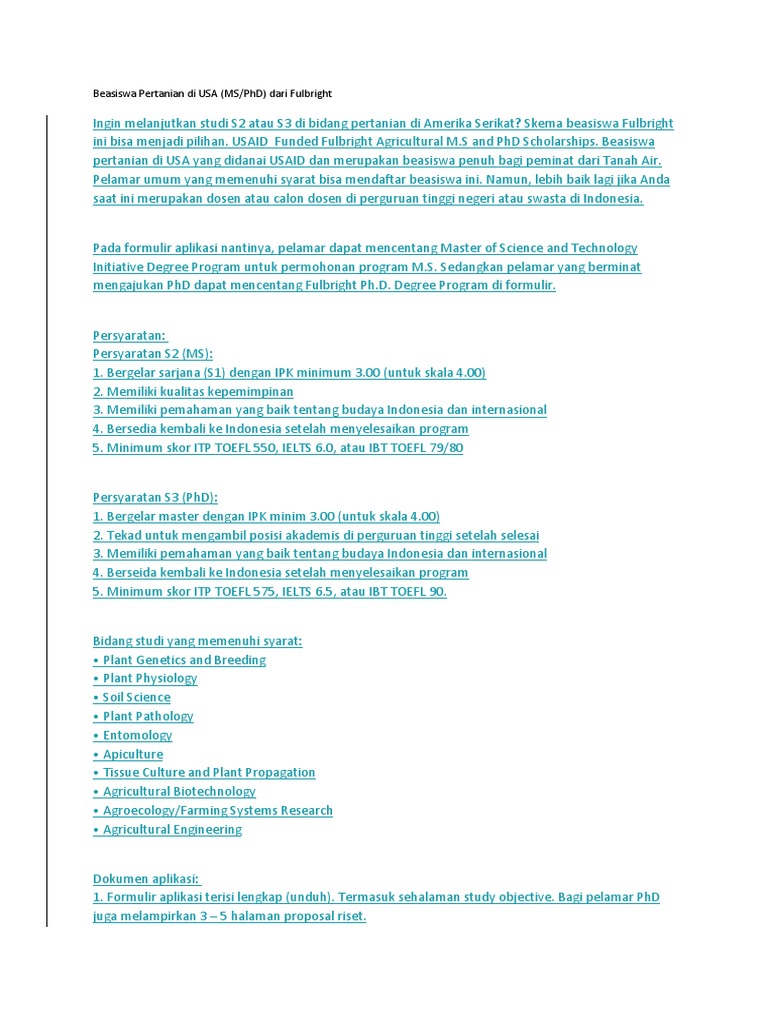 Beasiswa Pertanian Di Usa (Ms/Phd) Dari Fulbright