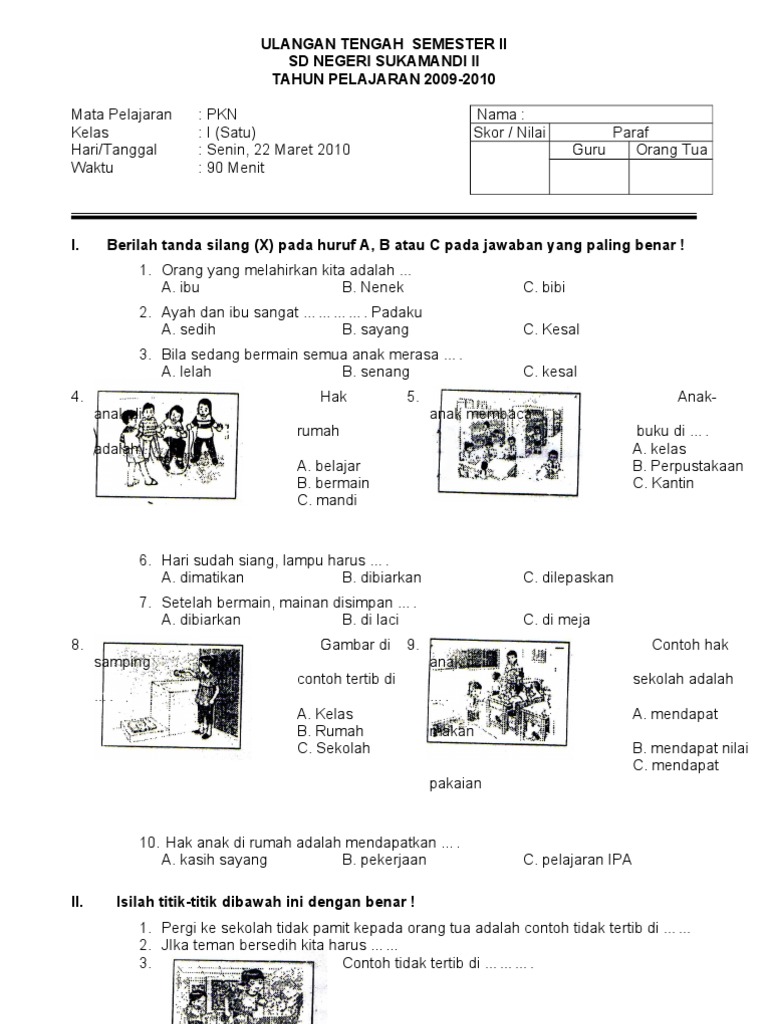 Soal Ukk Pai Kelas 1 Ktsp