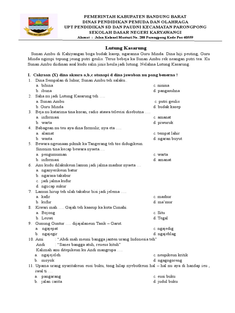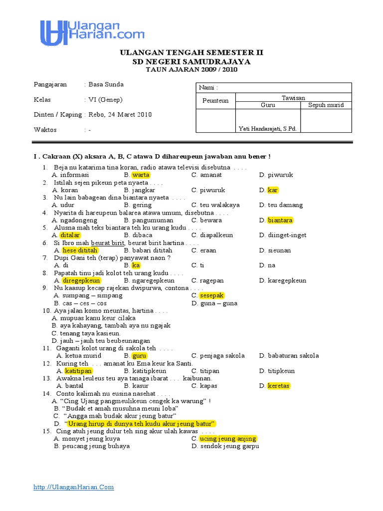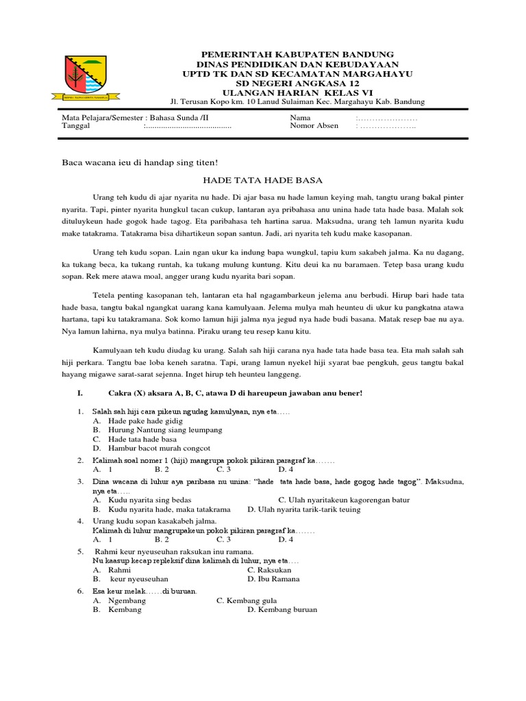 Soal Ukk Bahasa Sunda Kelas 1 Ktsp