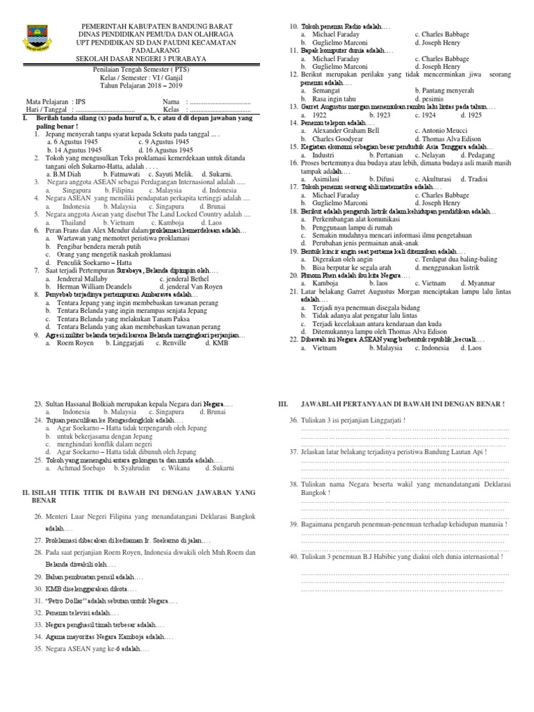 √ Terbaru Download Soal PTS/UTS SUNDA Kelas 6 Semester 2 SD/MI …