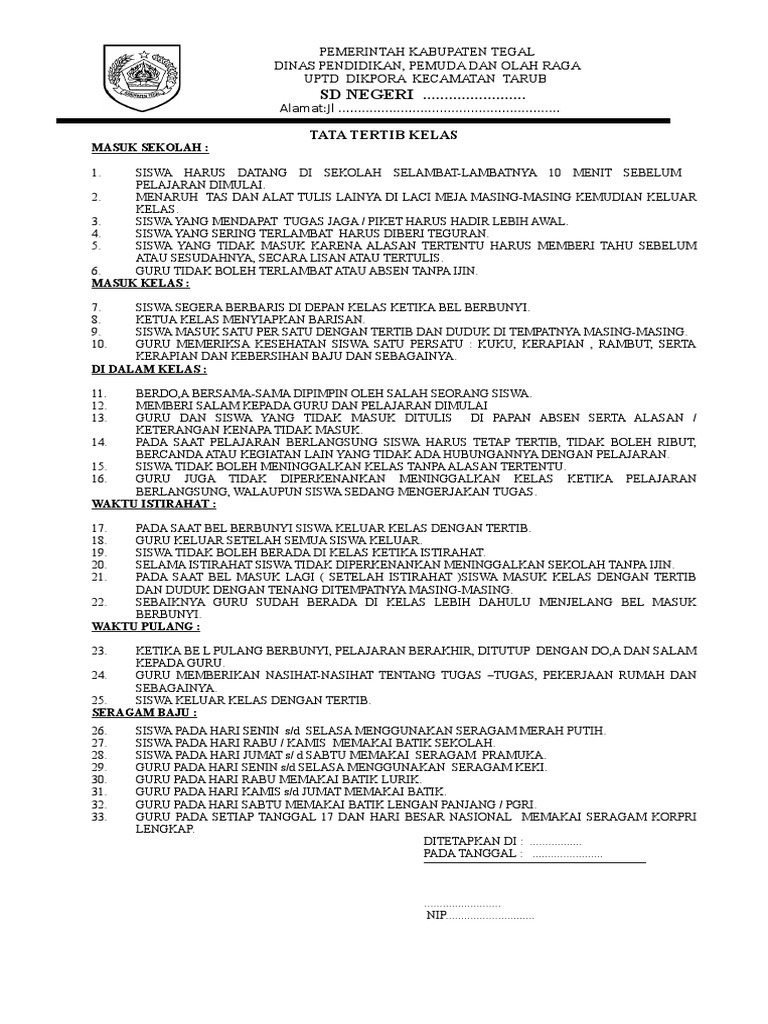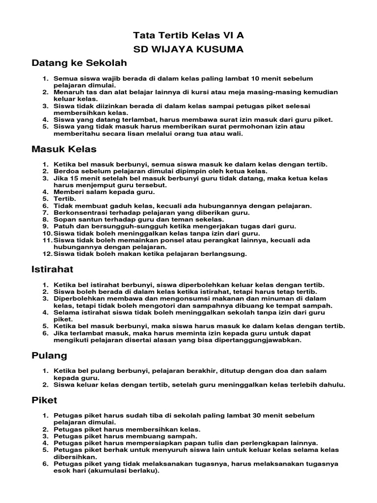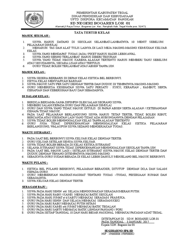 Contoh Tata Tertib Kelas Untuk Guru dan Wali Kelas (Tampilan …