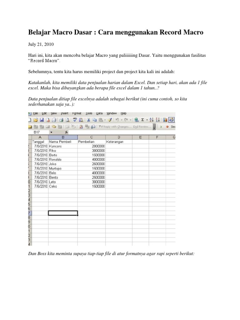 Belajar Mengotomatisasi Tugas Sehari-hari Dengan Excel Macro Step By Step