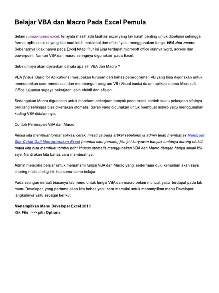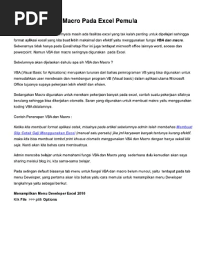 Belajar VBA Dan Macro Pada Excel Pemula