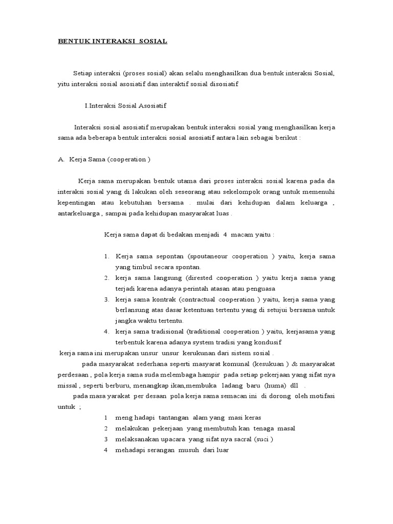 Bentuk Bentuk Interaksi Sosial Dalam Kehidupan Masyarakat …