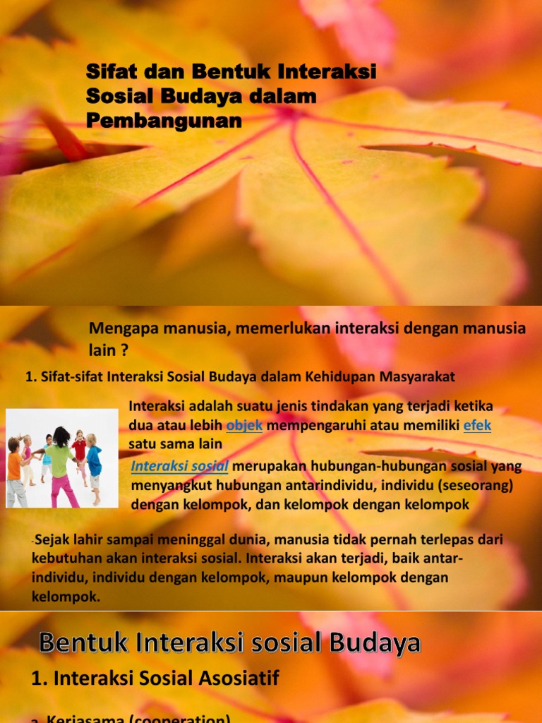 Sifat dan Bentuk Interaksi Sosial Budaya dalam Pembangunan - ppt …