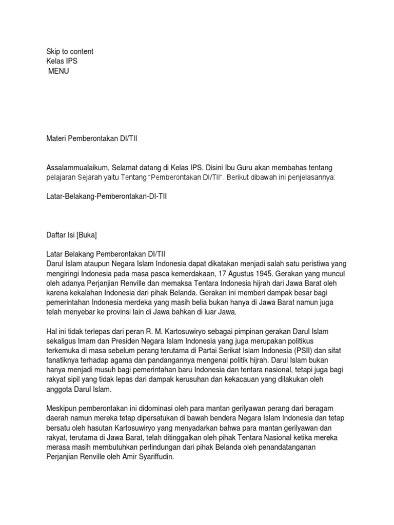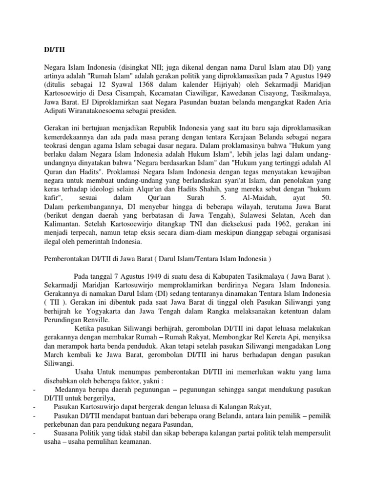 Sejarah Gerakan Darul Islam/Tentara Islam Indonesia (DI/TII) yang …