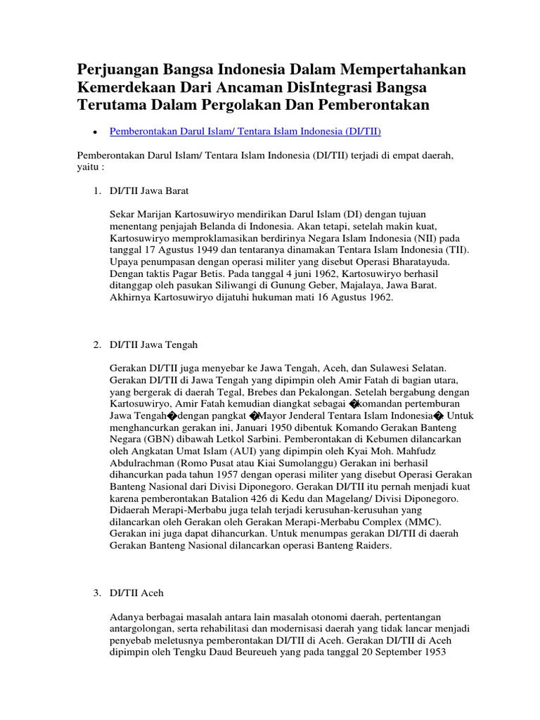 Pemberontakan Darul Islam/ Tentara Islam Indonesia (DI/TII …