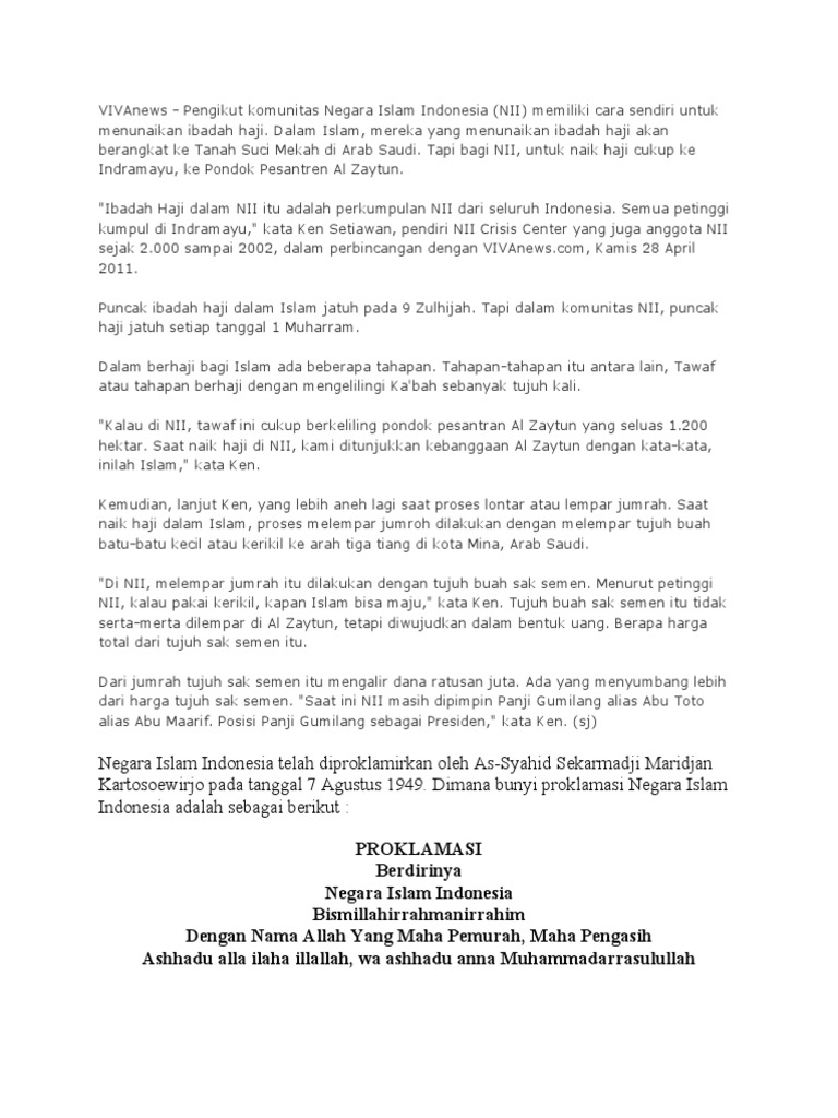 Sejarah Ringkas Berdirinya Negara Islam Indonesia Diunggah oleh …