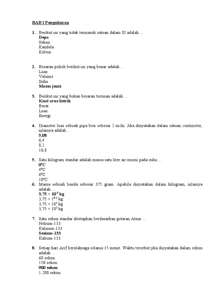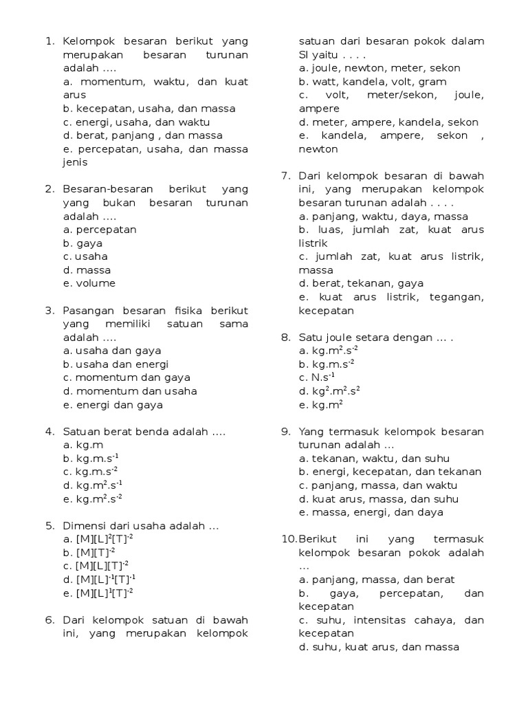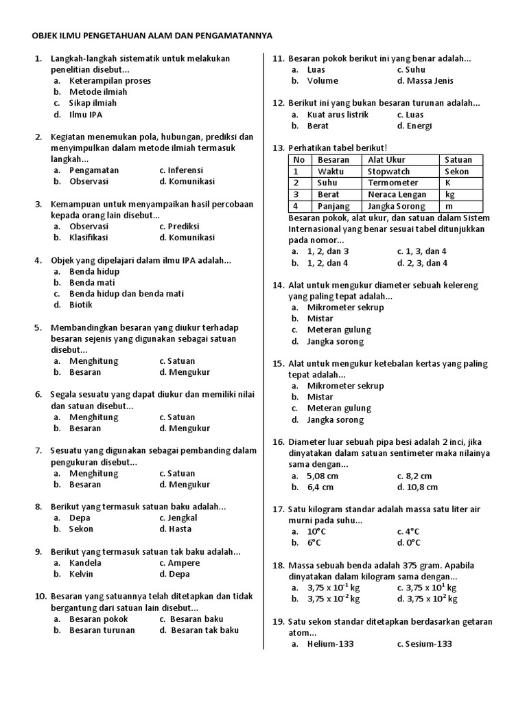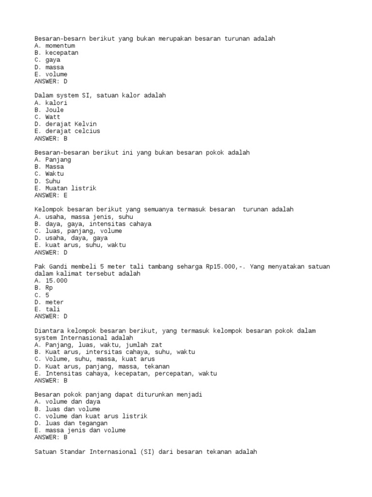 Soal dan pembahasan besaran dan satuan smp pilihan ganda …