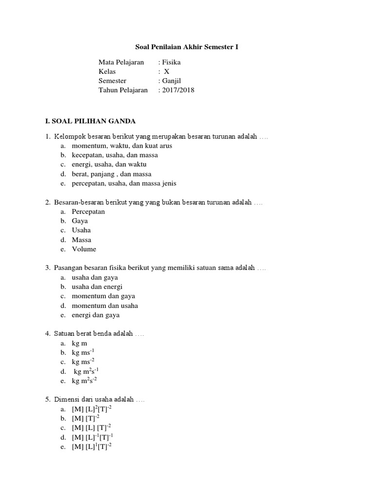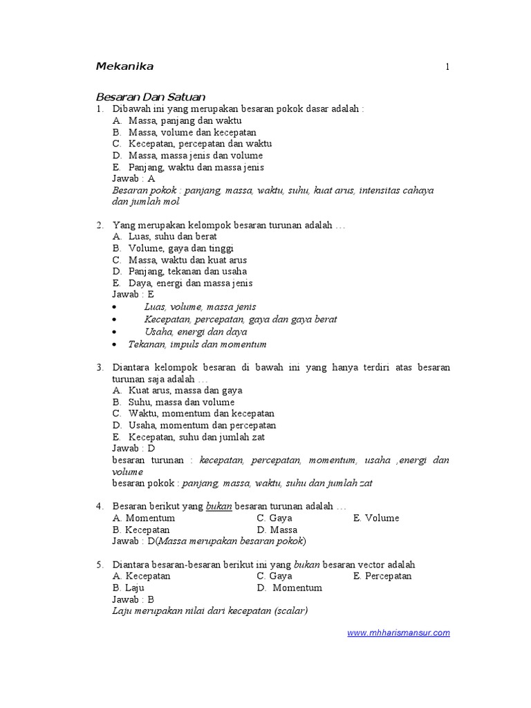 Contoh Soal Besaran dan Satuan (Pilgan - Essay) dan Jawabannya …