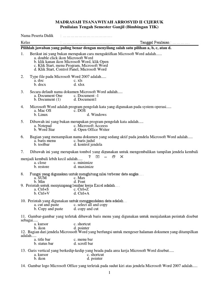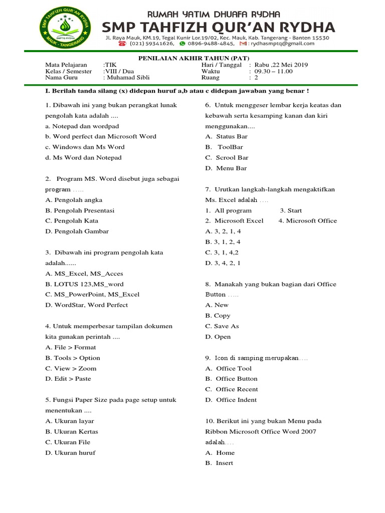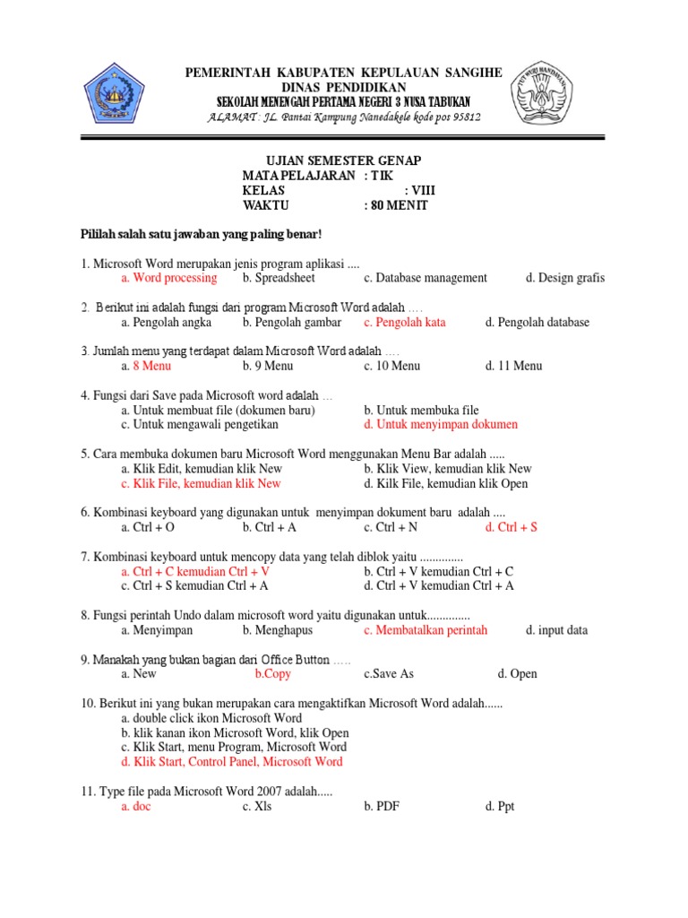 Soal TIK Kelas 8 Beserta Kunci Jawaban - [PDF Document]