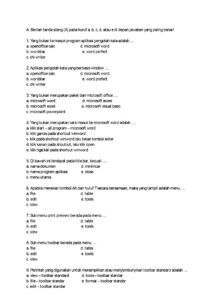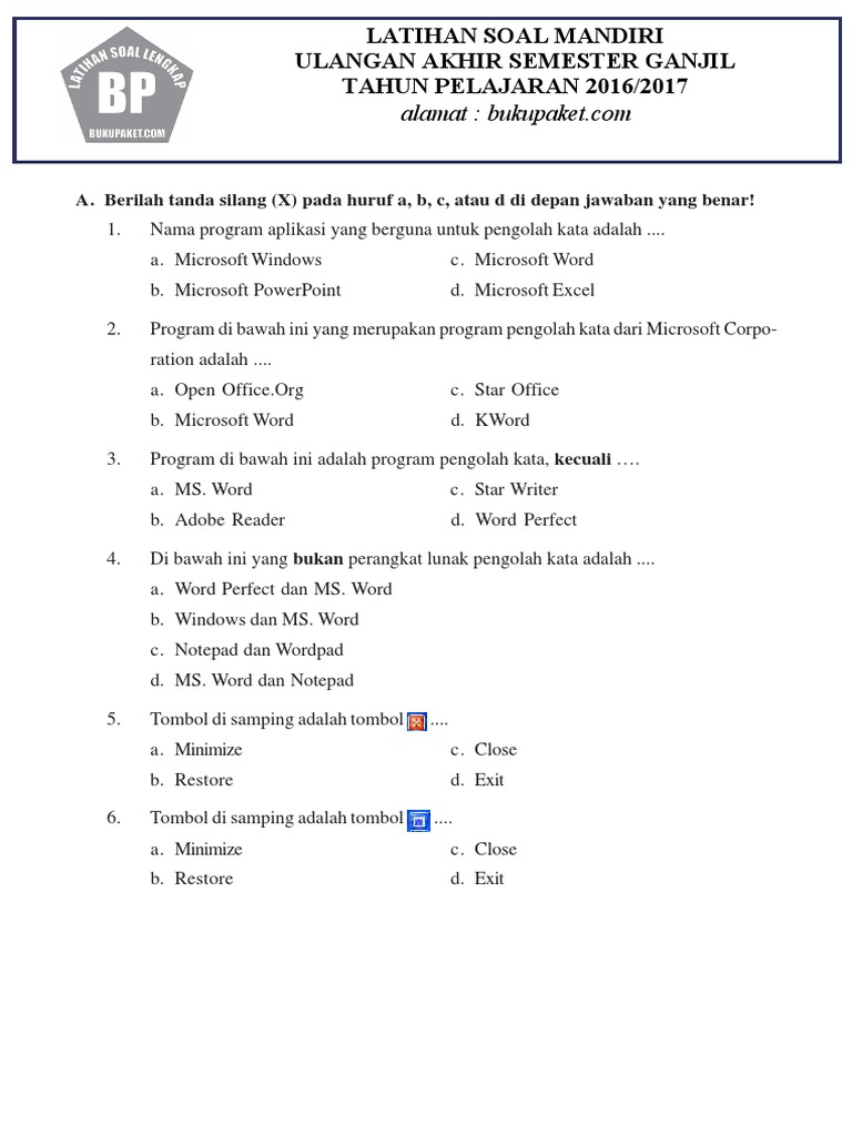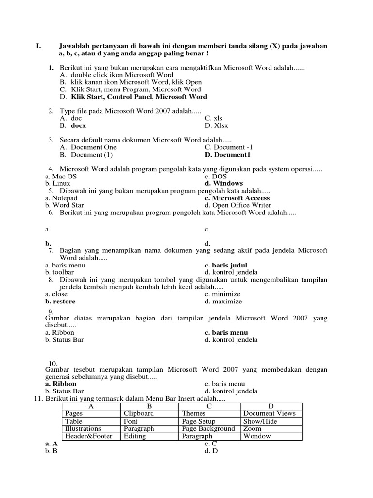 soal uas ganjil tik kelas 8 2016.docx - I Pilihlah jawaban a b c atau d yang dianggap paling benar dengan cara memberi tanda arsir(\u25cf pada lembar | Course Hero