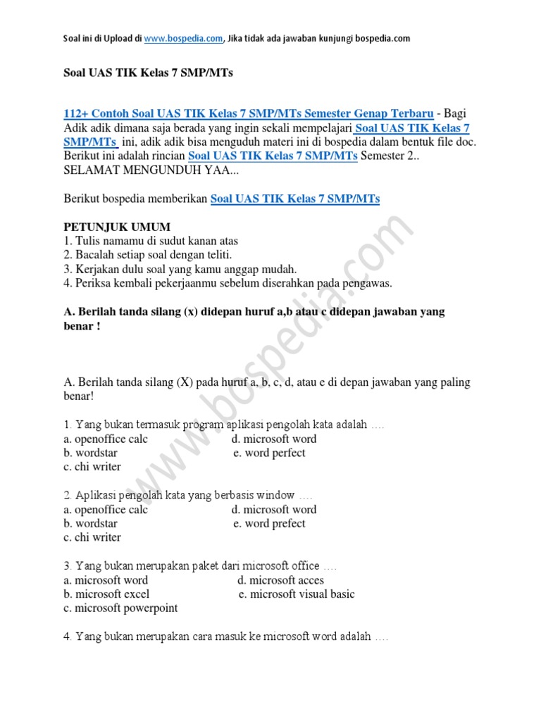 112+ Contoh Soal Uas Tik Kelas 7 Smp/Mts Semester Genap Terbaru Soal Uas Tik Kelas 7 Smp/Mts Soal Uas Tik Kelas 7 Smp/Mts
