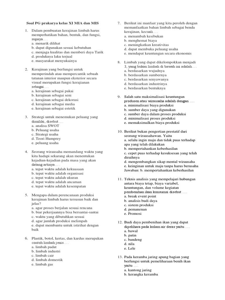bank-soal-prakarya-rekayasa-buat-siswa