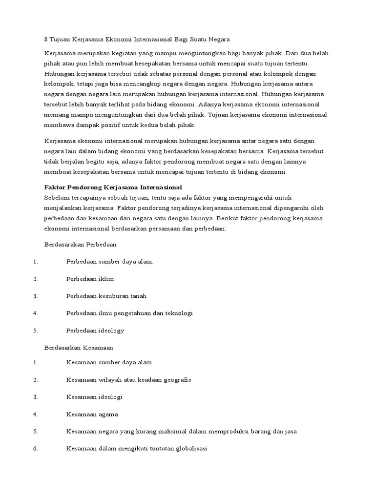 Faktor penyebab kerjasama ekonomi internasional (Sejarah …