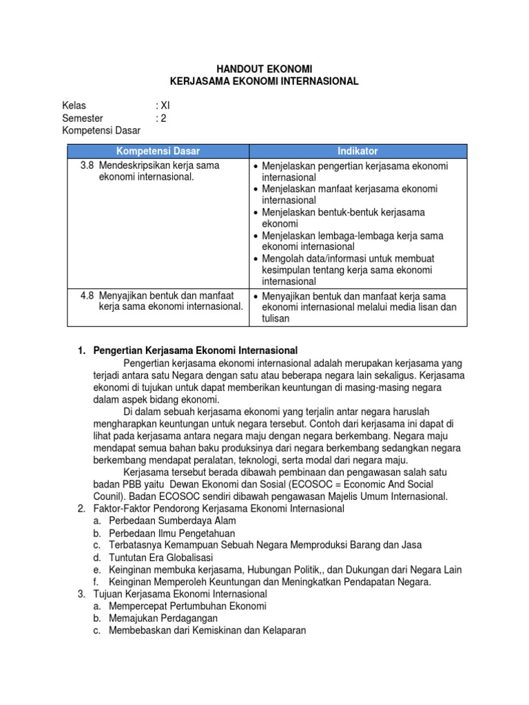 DOC) KERJA SAMA EKONOMI INTERNASIONAL yag gdvaGDLUY | beng andrean …