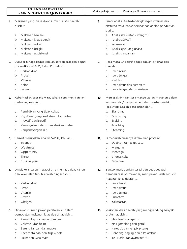 PENGOLAHAN PRODUK MAKANAN KHAS DAERAH KELAS XI - Quizizz