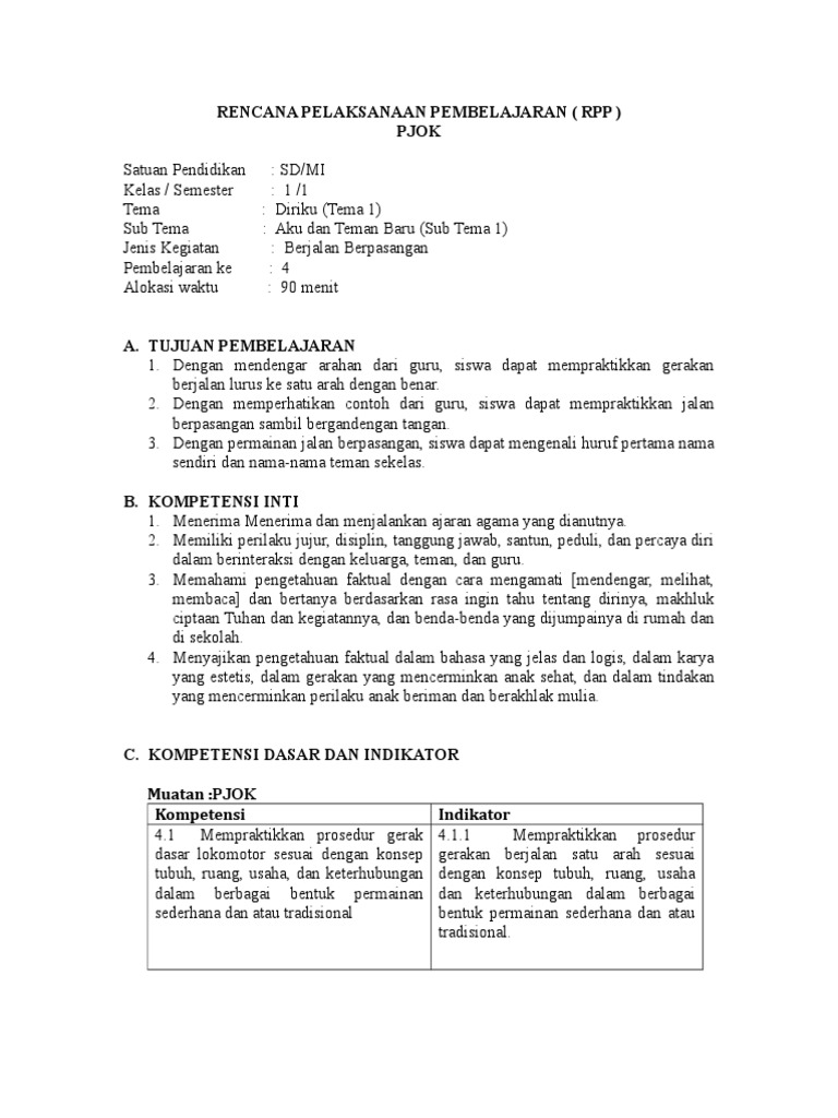 2. RPP 1.1.4. Berjalan Berpasangan dengan Teman.docx - RENCANA PELAKSANAAN PEMBELAJARAN REVISI 2017(Disusun Berdasarkan Permendikbud Nomor 22 Tahun 2016 | Course Hero