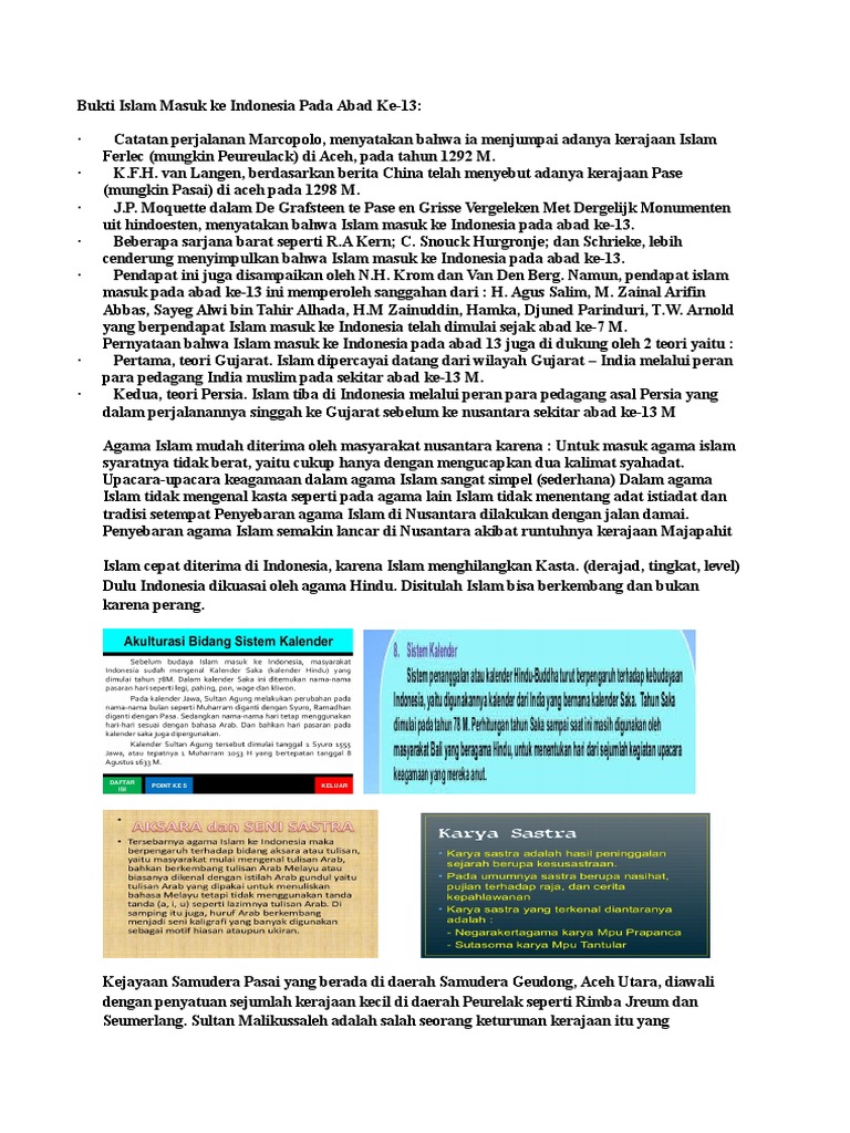 pendapat yang menyatakan bahwa islam masuk ke indonesia pada abad ke 13 didukung oleh bukti - Brainly.co.id