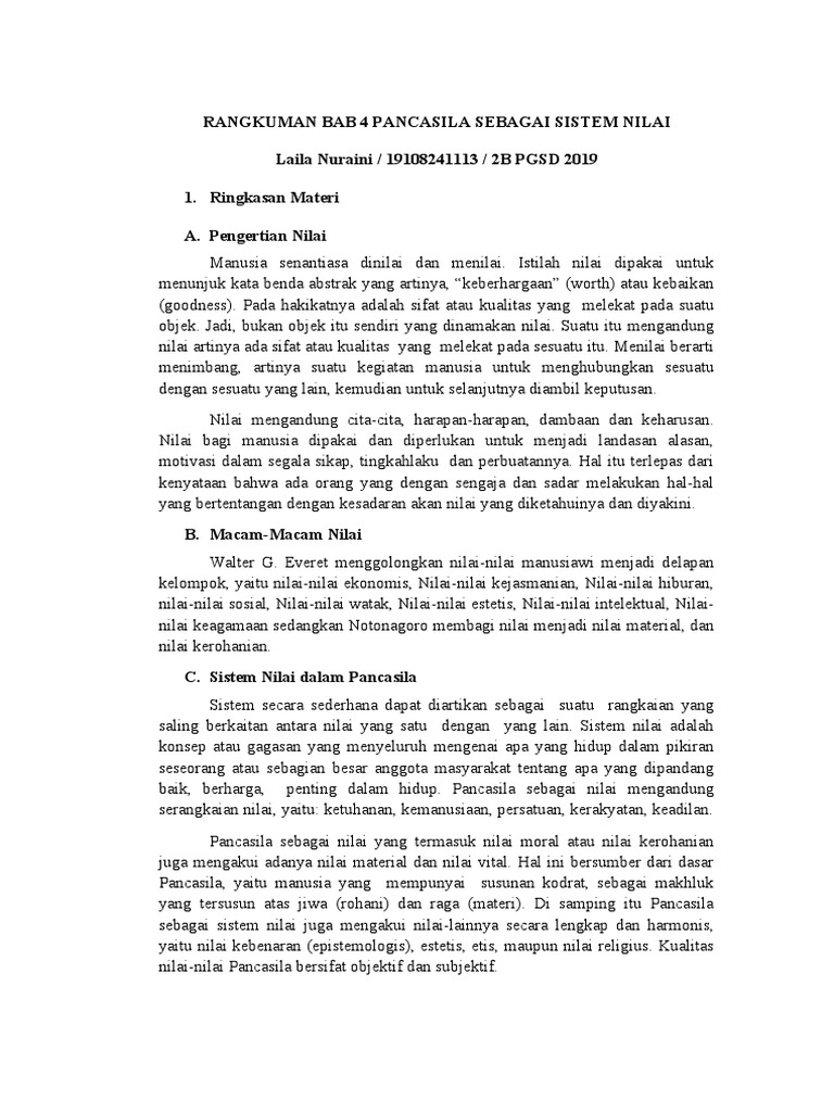 Rangkuman Bab 4 Pancasila Sebagai Sistem Nilai Laila Nuraini …