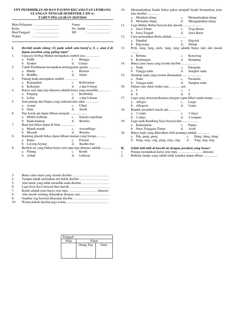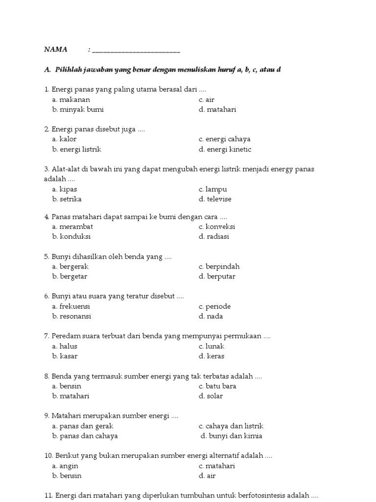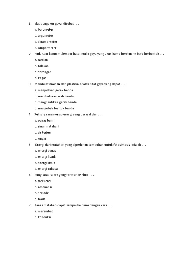 DOC) Soal UTS IPA Kelas 4 semester 2 | bayu kurniawan - Academia.edu