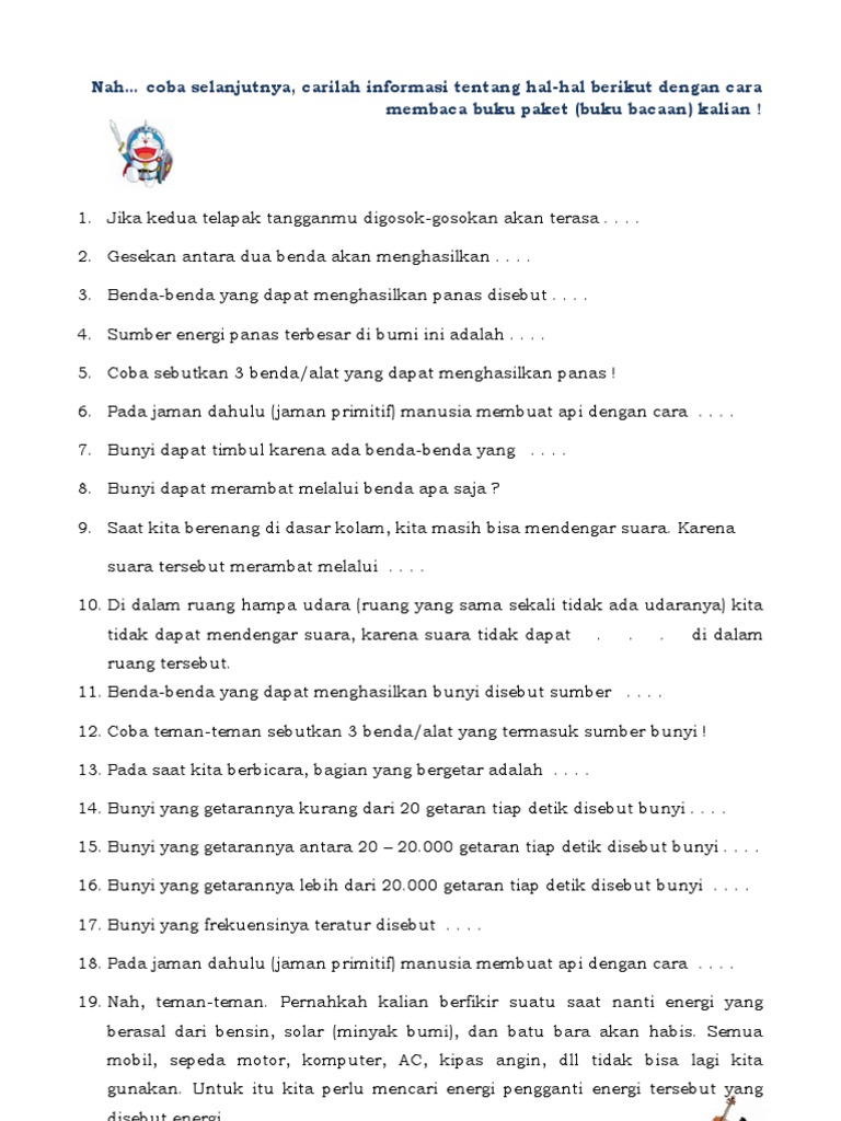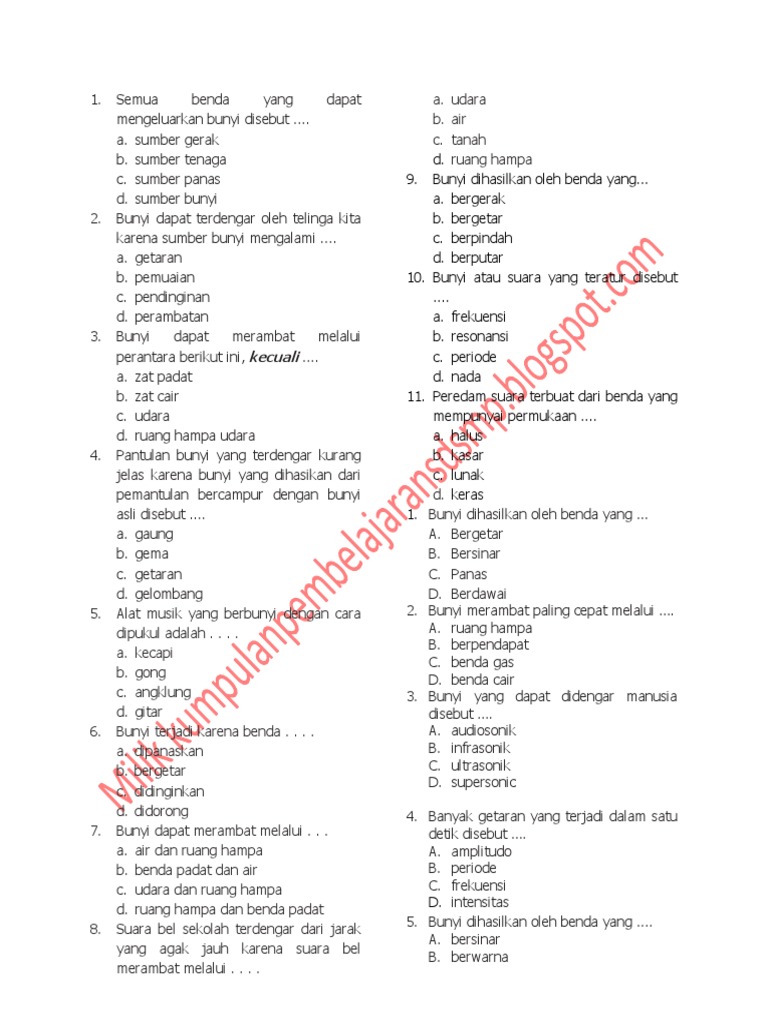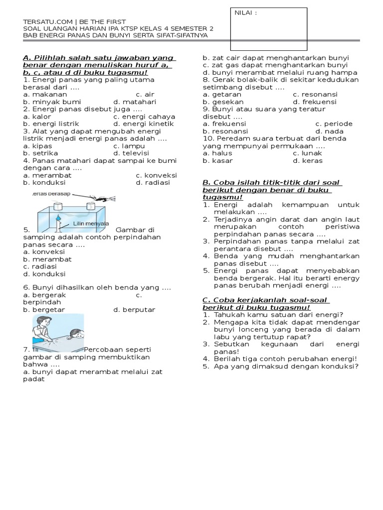 Soal Uh Ipa Bab Energi Panas Dan Bunyi Serta Sifat-sifatnya Ktsp Semester 2