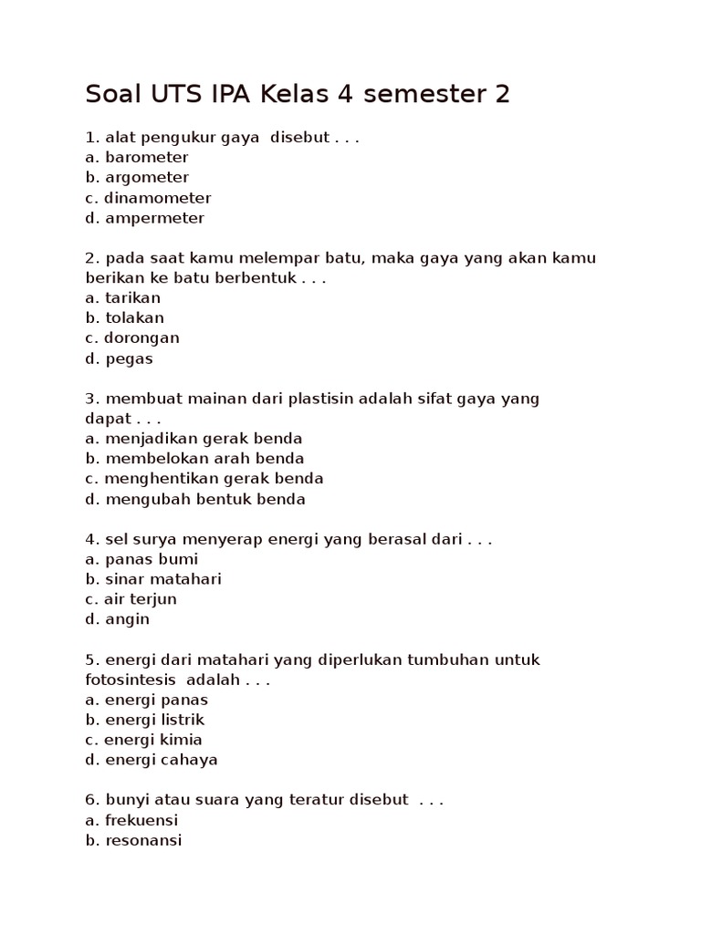 Latihan Soal Uts Ipa Kelas 4 Sd Semester 2 | idn. paperplane