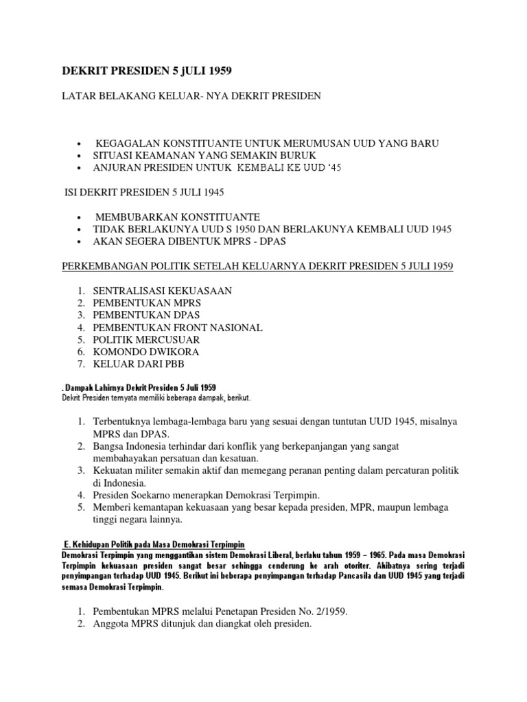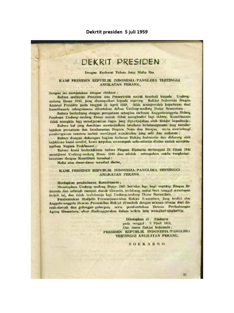 PDF) LATAR BELAKANG LAHIRNYA DEKRIT PRESIDEN 5 JULI 1959 | Vega Sukma - Academia.edu