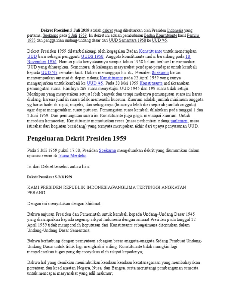 Isi Dekrit Presiden 5 Juli 1959 Lengkap | Dimas Zher II - Academia.edu