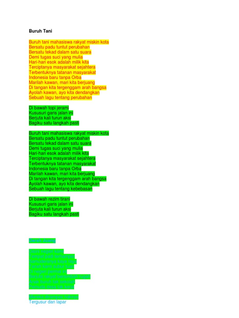 Lirik Lagu Buruh Tani Mampu Mengendalikan Massa dan Mahasiswa …