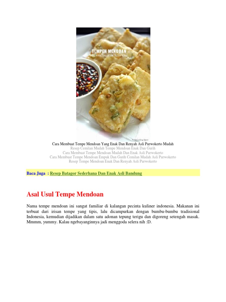 Resep Tempe Mendoan Asli Cilacap | Resep tempe, Makanan dan minuman, Resep
