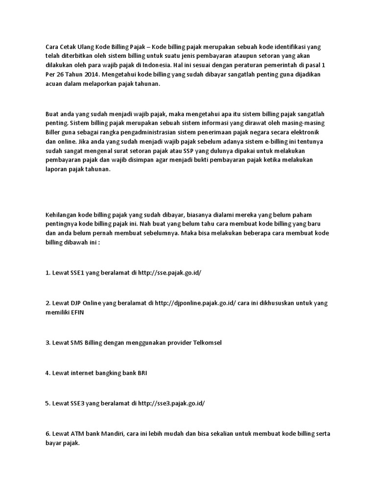 Cara Cetak Ulang Kode Billing Pajak Mudah - Tutorial Pajak