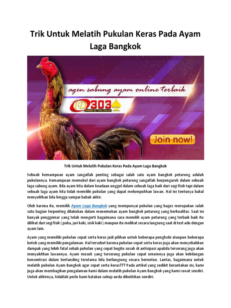 Cara Membuat Pukulan Ayam Bangkok Mematikan - Ayam Aduan Online …