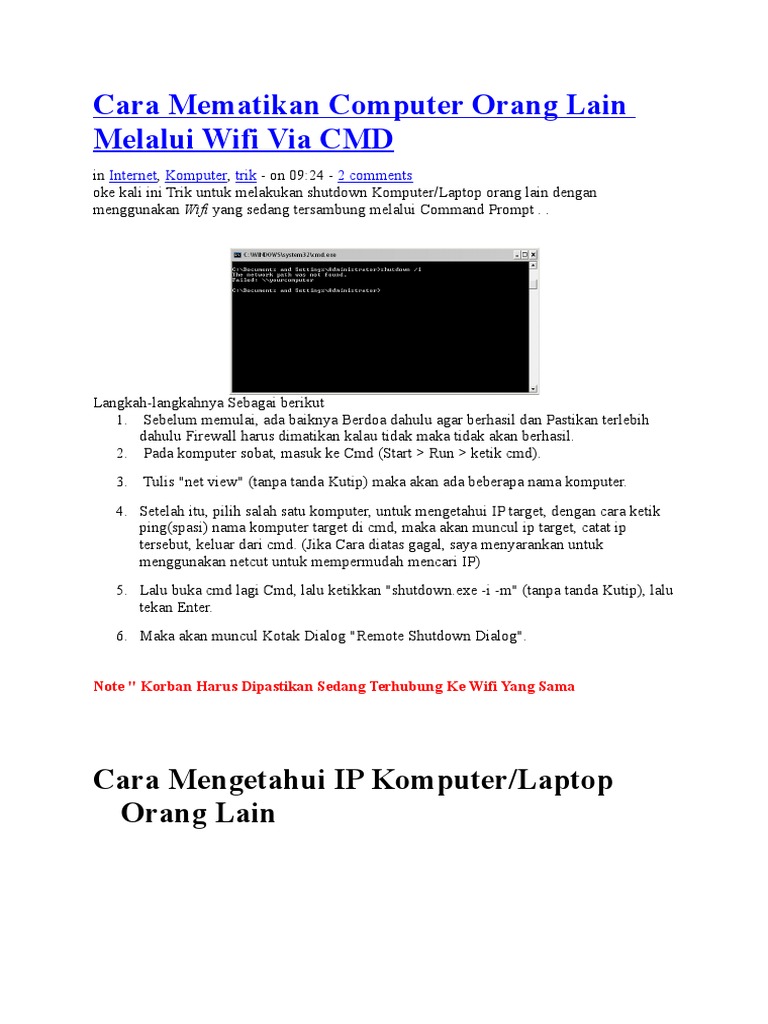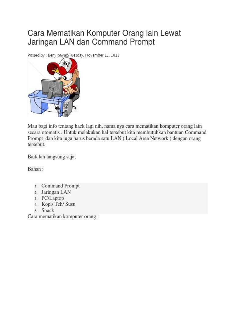 CARA ISENG MEMATIKAN KOMPUTER ORANG LAIN MENGGUNAKAN CMD - PDF …