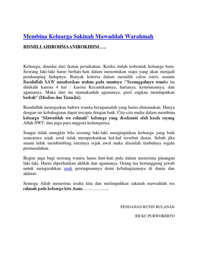 DOC) Membina keluarga sakinah mawaddah warahmah | Bonand Ramana - Academia.edu