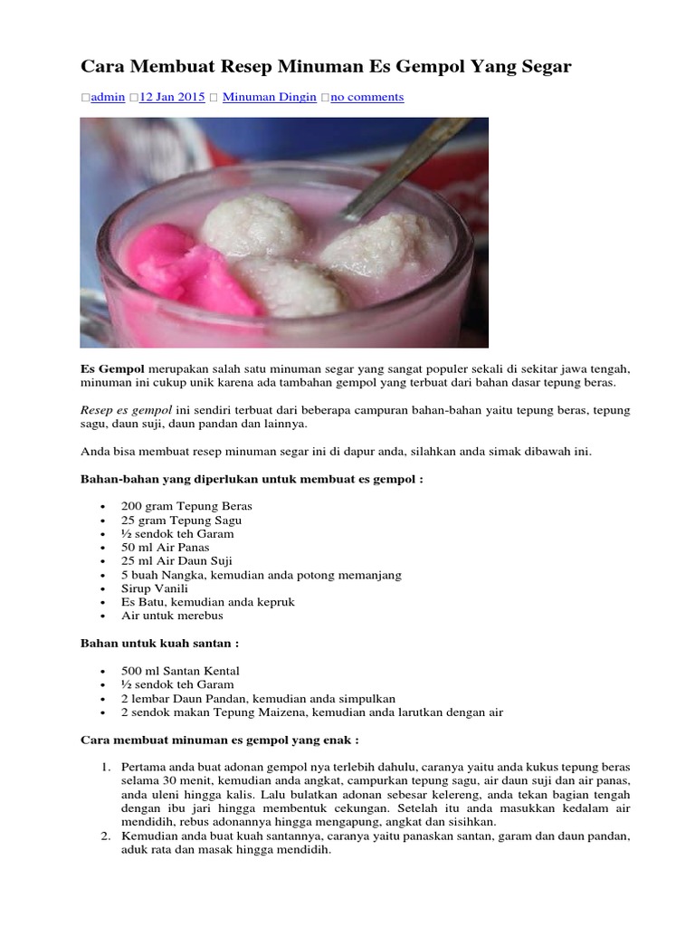 Resep Es Gempol Homemade. Lezat, Segar, dan Mengenyangkan …
