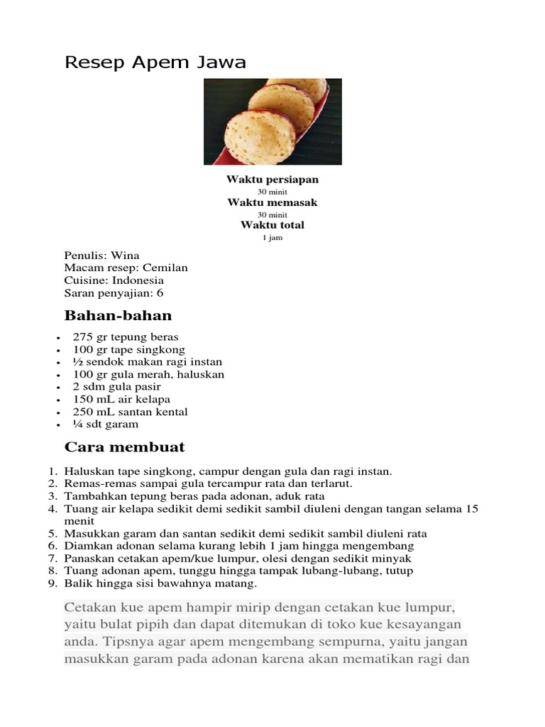 Apem Jawa Empuk | Resep, Makanan dan minuman, Resep makanan penutup