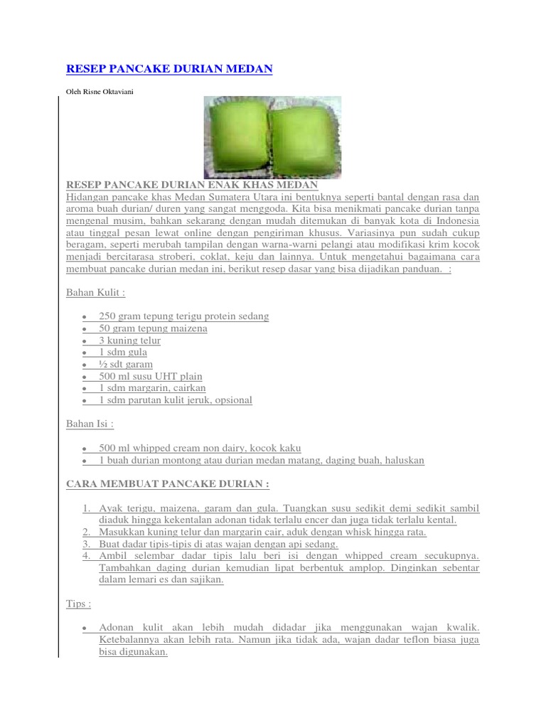 Resep Pancake Durian Asli Medan. resep pancake durian medan halus …