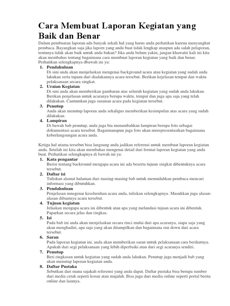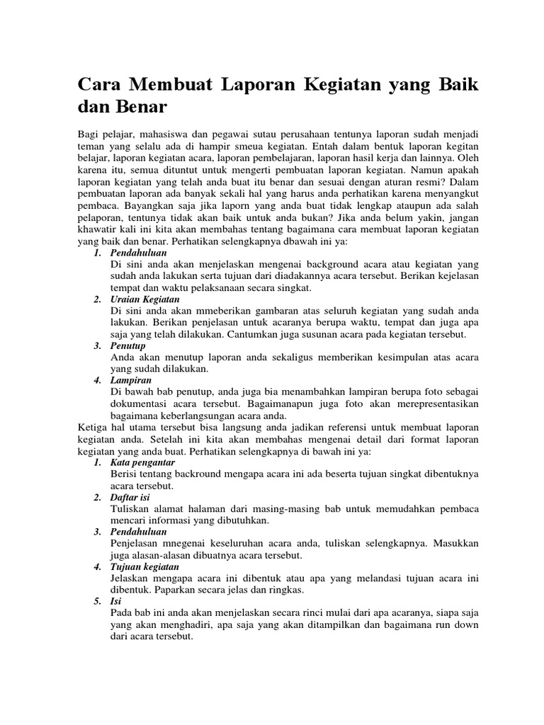 Cara Membuat Laporan Kegiatan Yang Baik Dan Benar: 1. Kata …