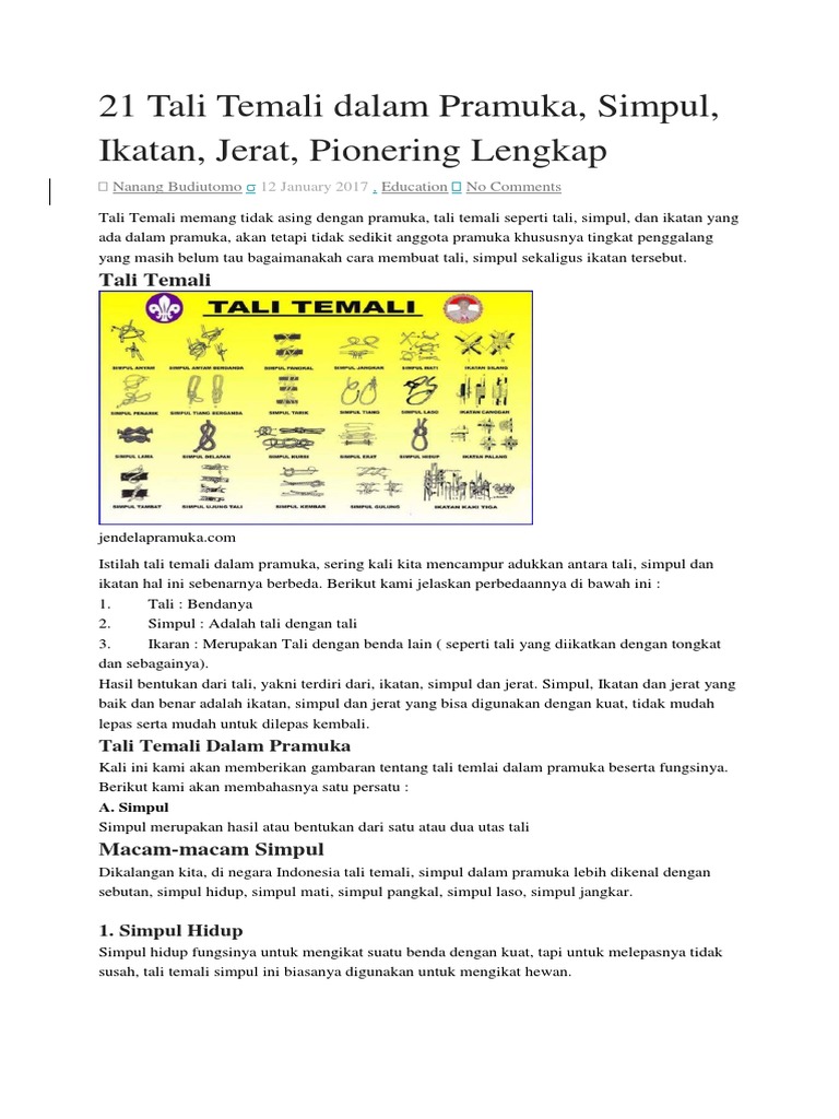 21 Tali Temali dalam Pramuka, Simpul, Ikatan, Jerat, Pionering …