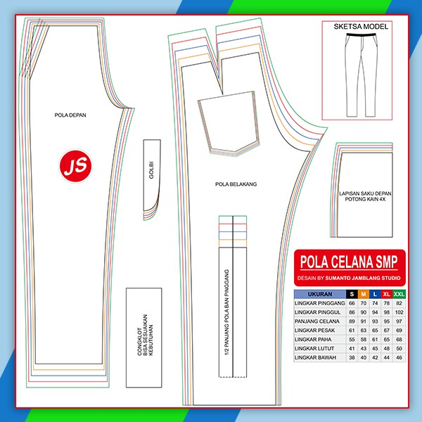Pola Jiplak Celana Kolor All Size 7 in 1 [ Pola Baju Jamblang Studio ] | Shopee Indonesia