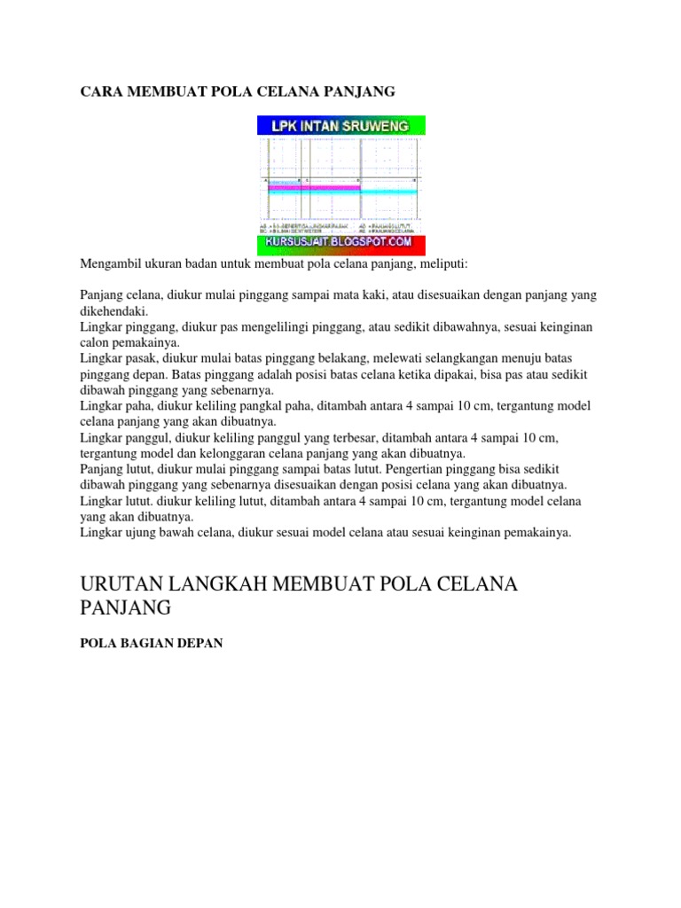 CARA MEMBUAT POLA CELANA PANJANG - Cara Menjahit Pakaian