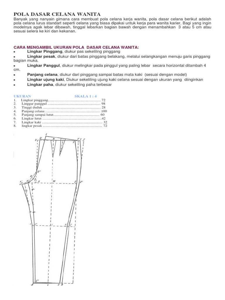 Jual Jual Pola Celana Wanita size XS - XXL - Kab. Sleman - Rumah Jahit Madina | Tokopedia