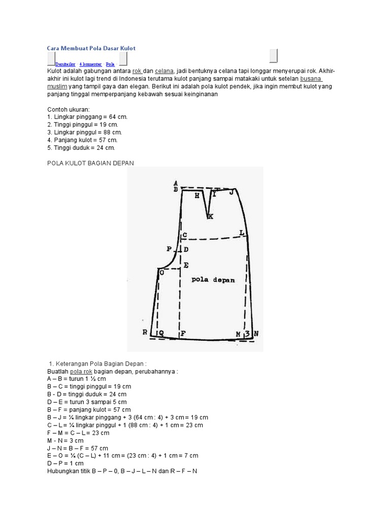 POLA DASAR KULOT | Pembuatan pola, Pola celana, Menjahit