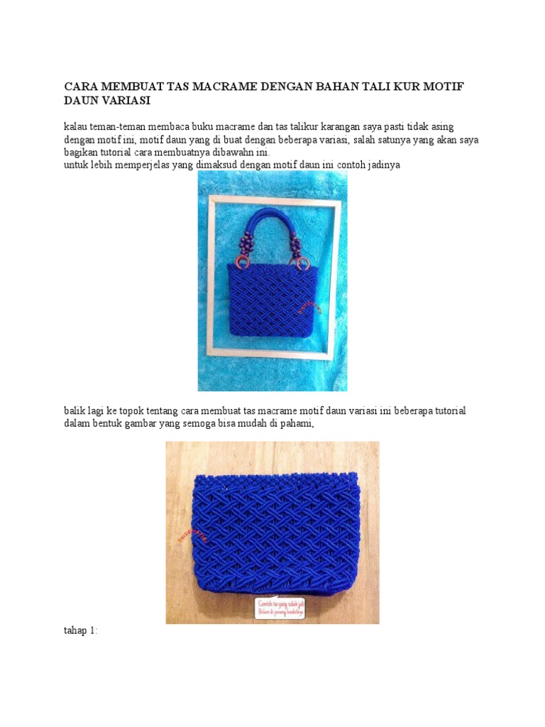 DOC) Cara Membuat Tas Tali Kur | Dinas P2PA Pasid - Academia.edu