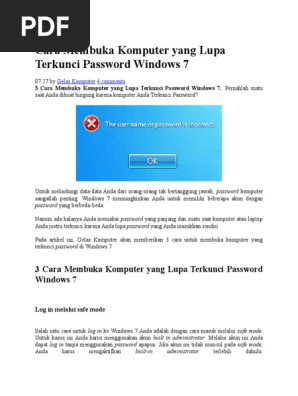 3 Cara Membuka Komputer yang Lupa Terkunci Password Windows 7 atau …