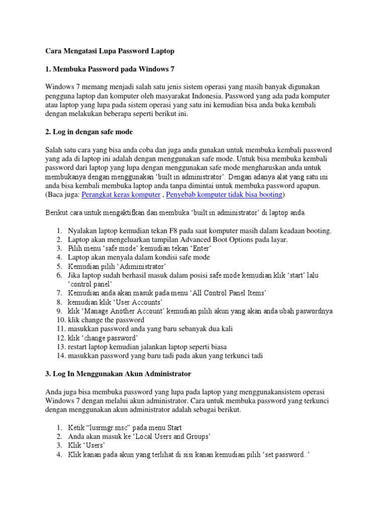 Cara Mengatasi Lupa Password Laptop 1. Membuka Password …